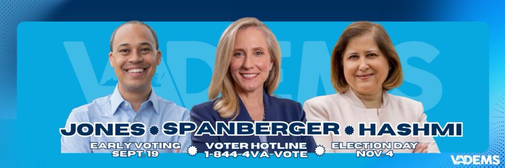 The Democratic Party of Virginia is thrilled to announce our statewide ticket that will lead Democrats to victory in November: former Congresswoman Abigail Spanberger for Governor, State Senator Ghazala Hashmi for Lieutenant Governor, and former Delegate Jay Jones for Attorney General.