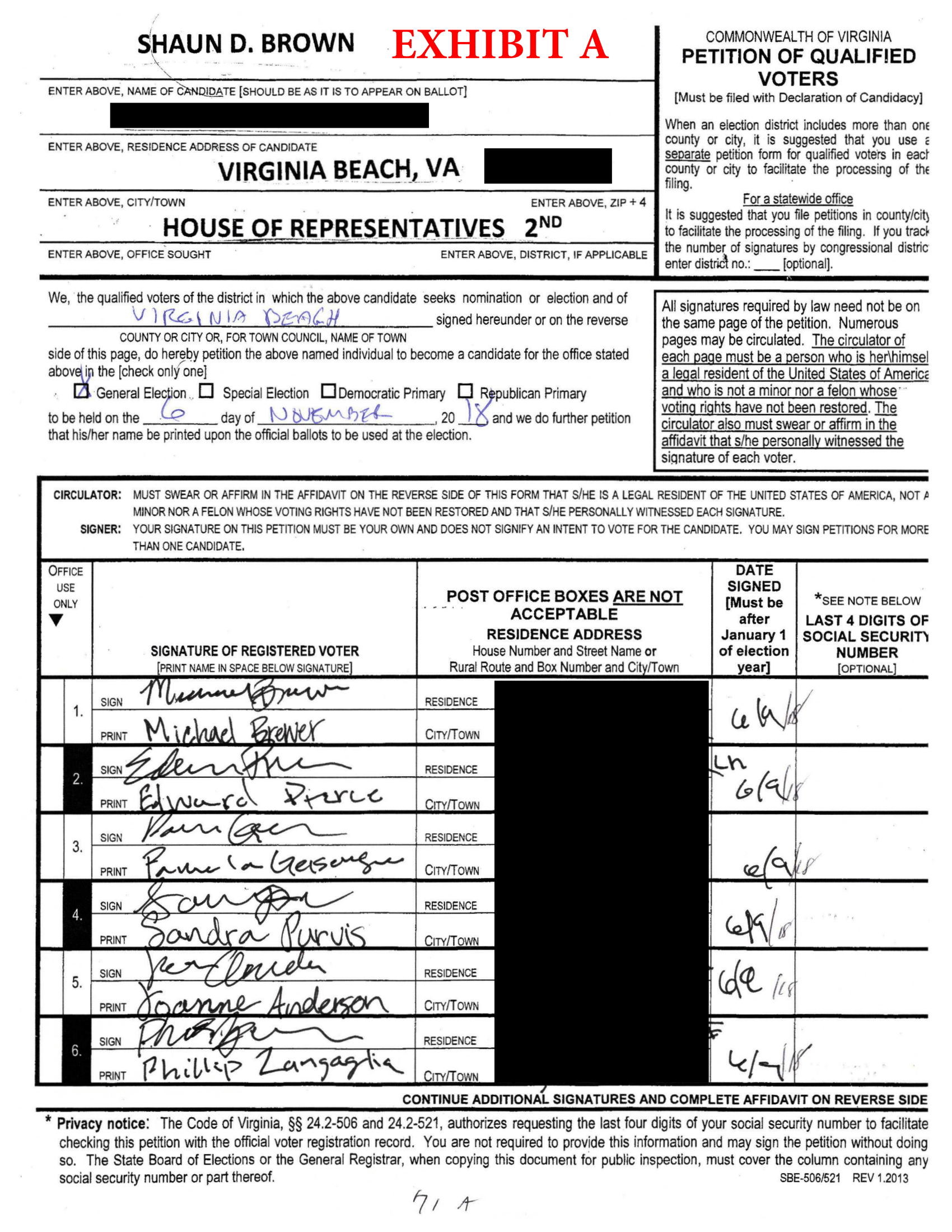 Letter to State Board of Elections with Affidavits from Voters Attached