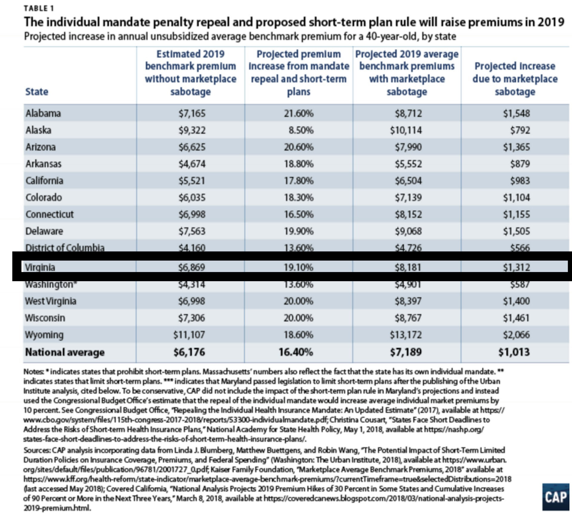According to the non-partisan Urban Institute study, the Trump administration has already "unnecessarily driven up 2018 premiums for ACA-compliant coverage." Even worse, with his recent actions, Trump has made sure that 2019 will be even more painful for the average Virginian. By sabotaging the ACA through canceling cost-sharing reduction payments and legalizing the extension of high-priced short term health care plans, among other hurtful schemes, Trump will make healthcare premiums rise nationally by 16% and in Virginia by an astounding 19%.