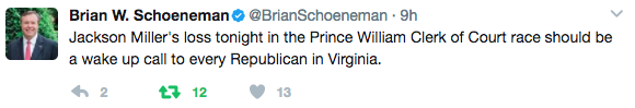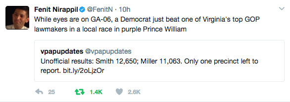 Last night’s results -- both in Prince William County and in Georgia -- are further proof that grassroots energy within Donald Trump’s first 100 days in office can translate into electoral progress here in the Commonwealth and across the country.
