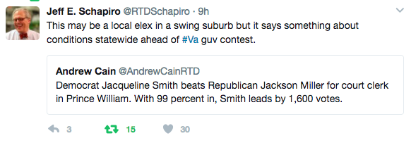 Jackie Smith “Beat long odds”... “Prince William county has long been friendly territory for Republicans” .... “Should be a wake up call for Republicans in Virginia”
