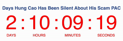 Richmond, VA – Today, the Democratic Party of Virginia is releasing a clock so Virginians can keep track of how long Hung Cao has refused to comment after he was caught lying about using money from his super PAC to promote himself instead of fulfilling his promise to help Virginia Republicans in 2023.